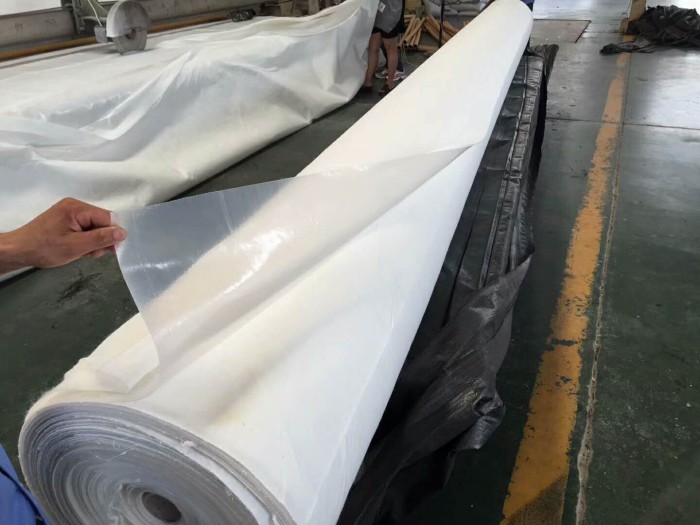 復(fù)合土工膜是在薄膜的一側(cè)或兩側(cè)貼上土工布,形成復(fù)合土工膜。其形式有一布一膜、二布一膜、兩膜一布等。